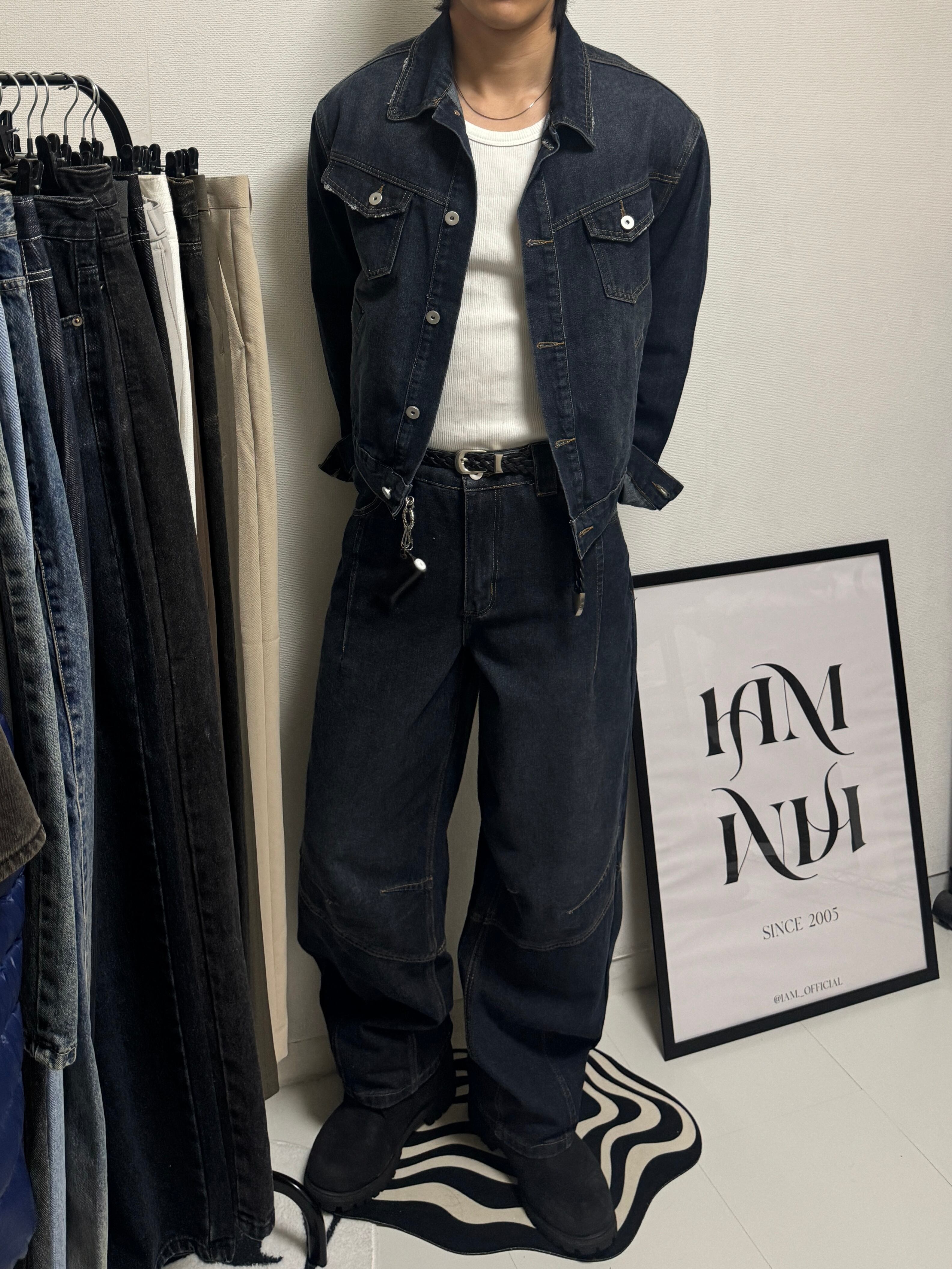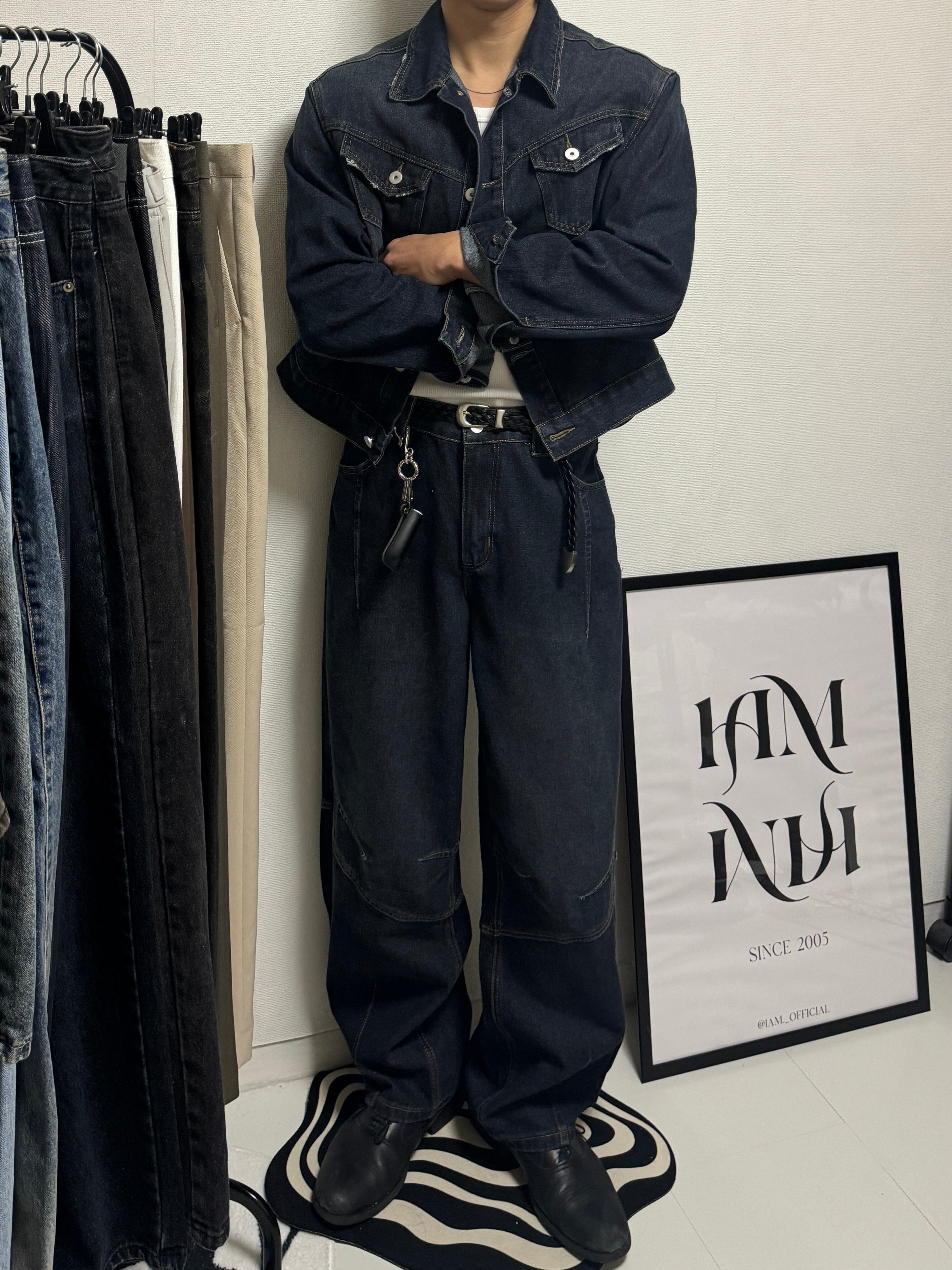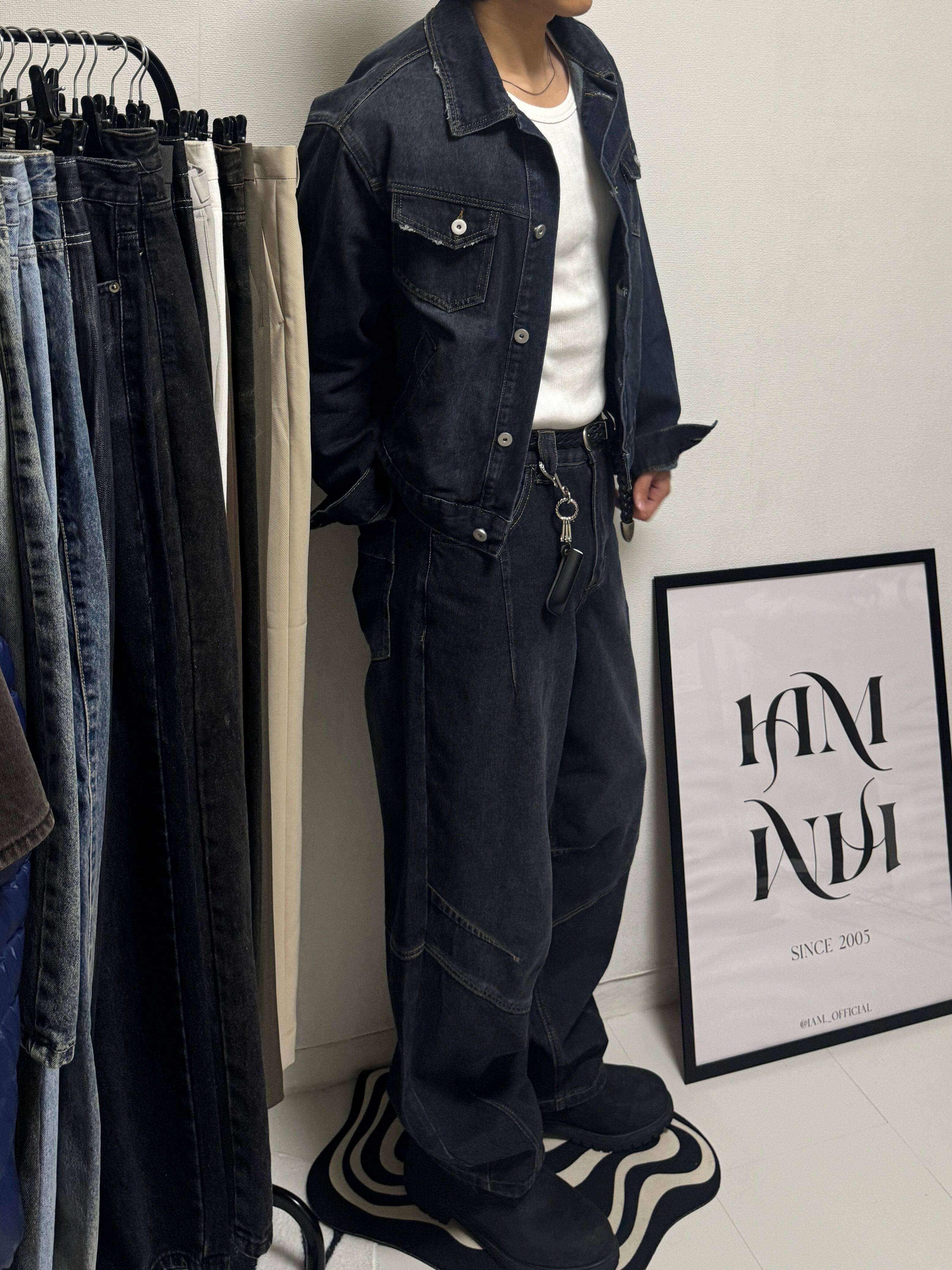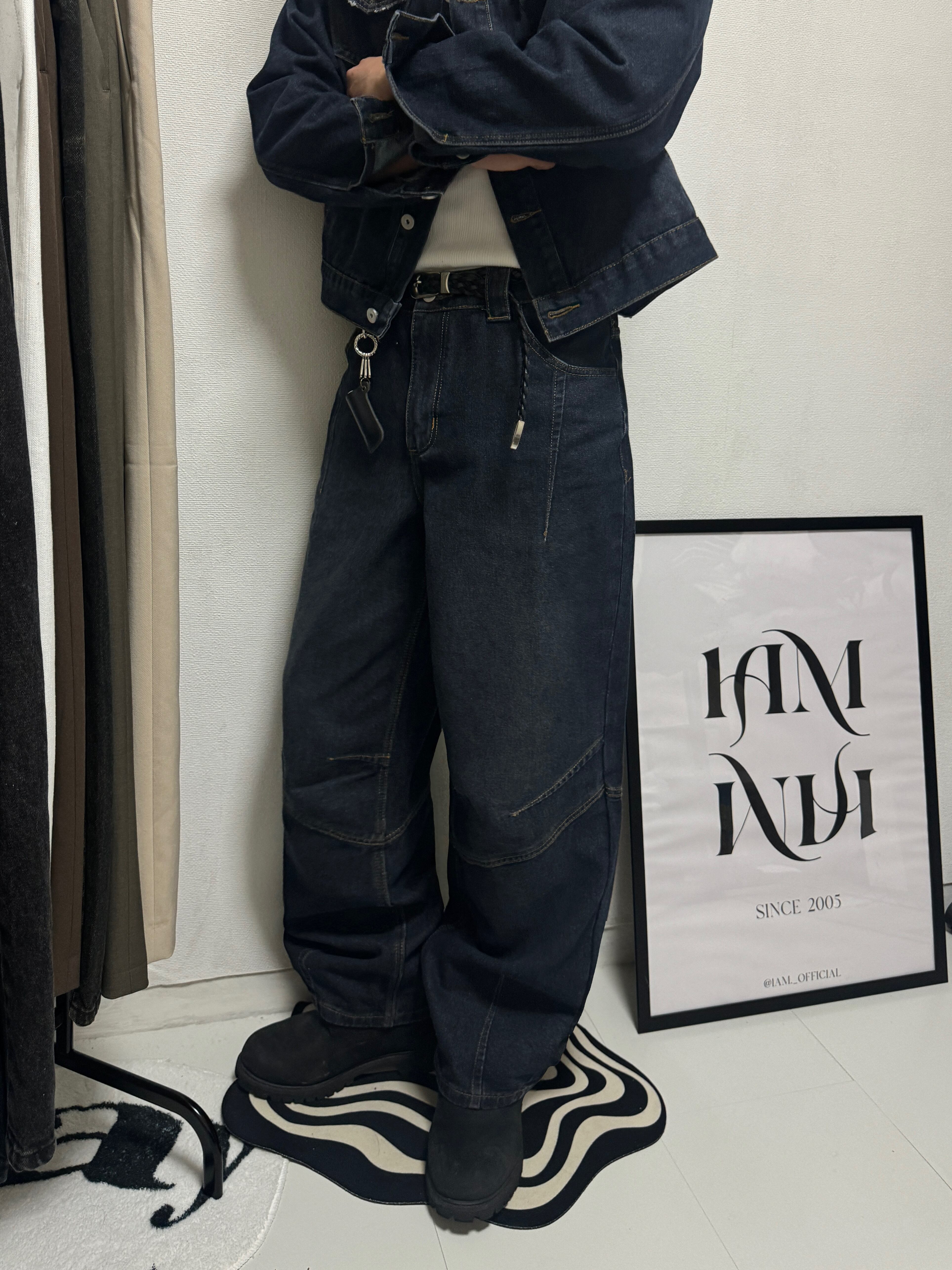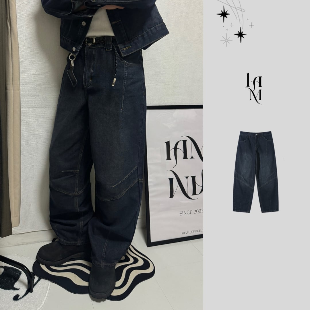 【PANTS】Structured Panel Lined Wide Denim (Dark Blue)