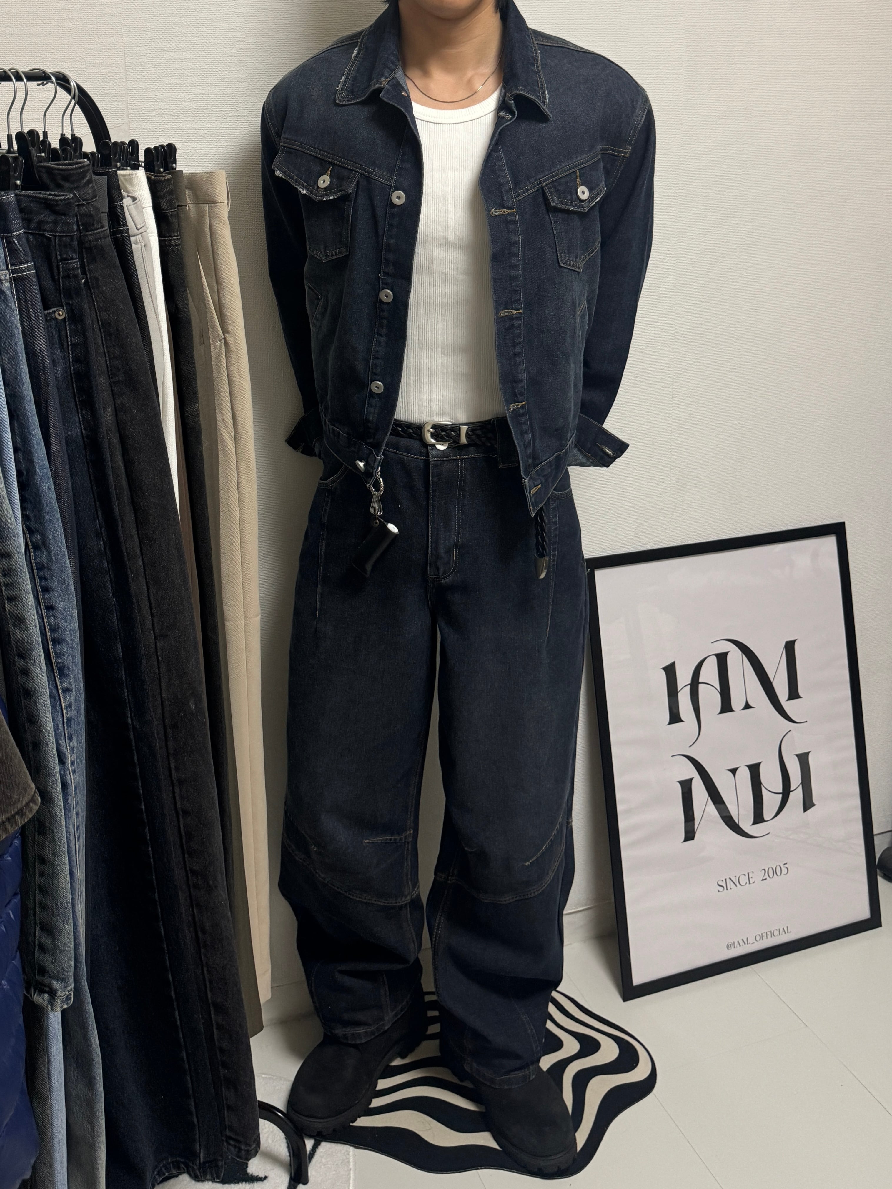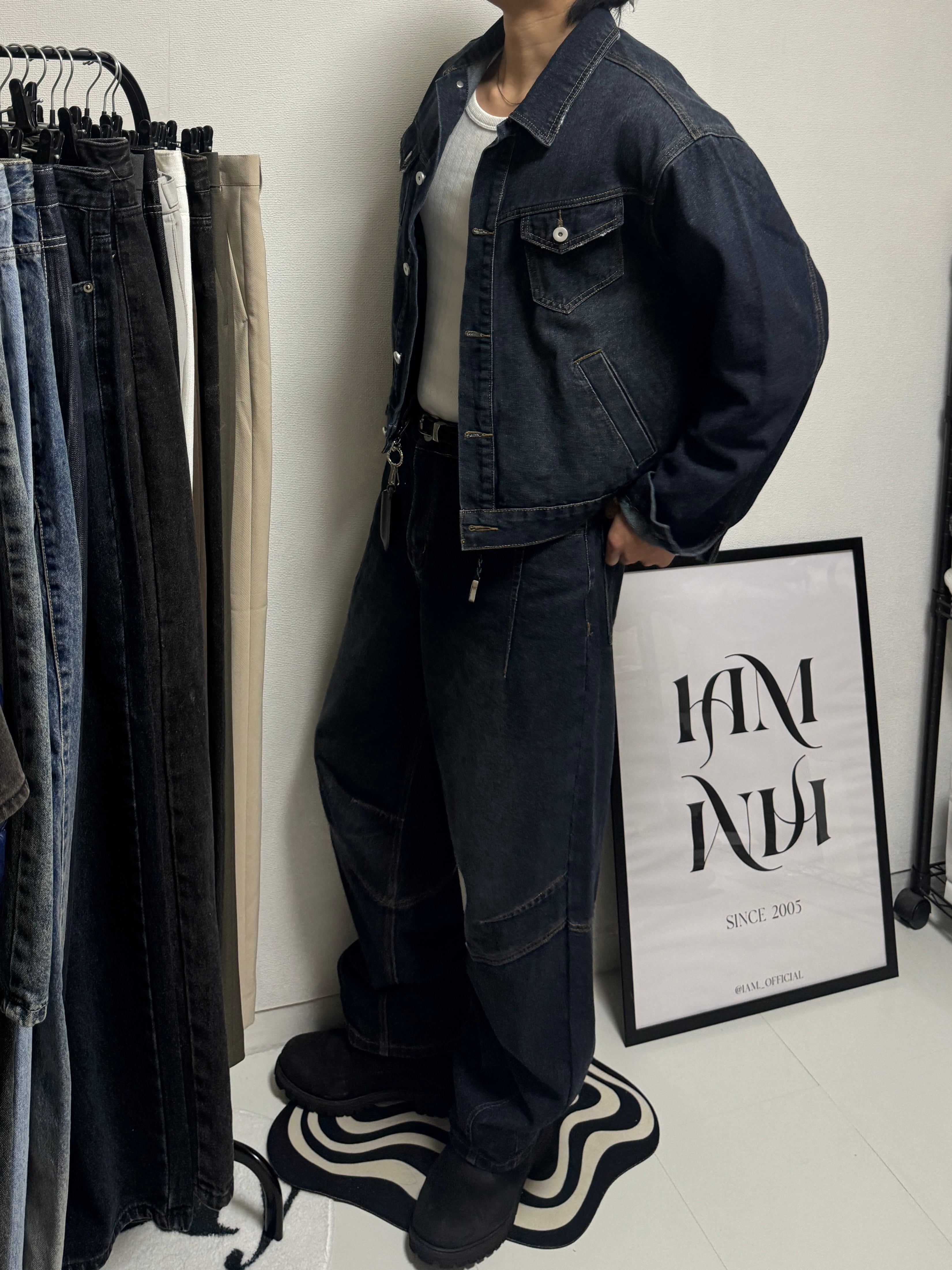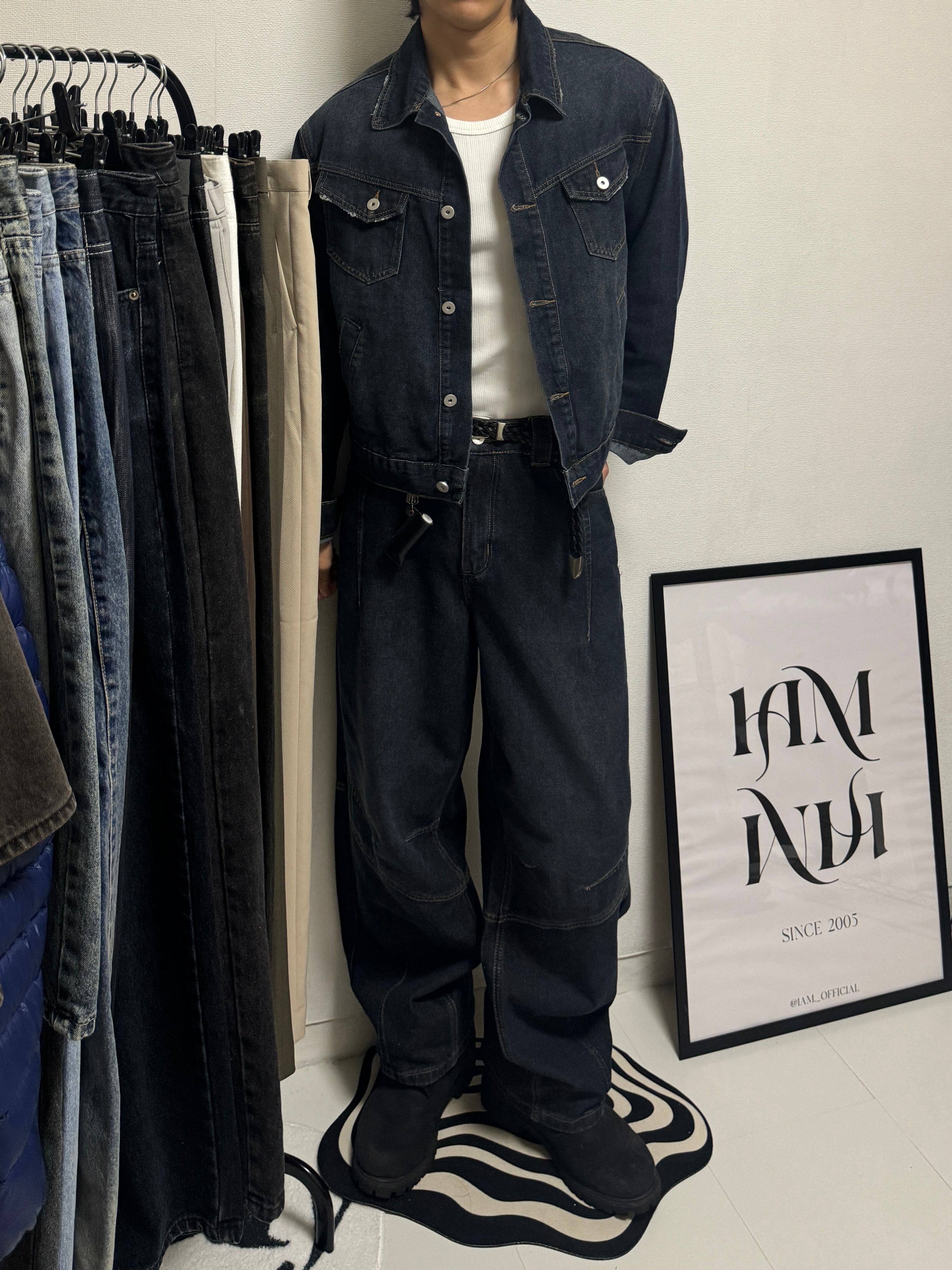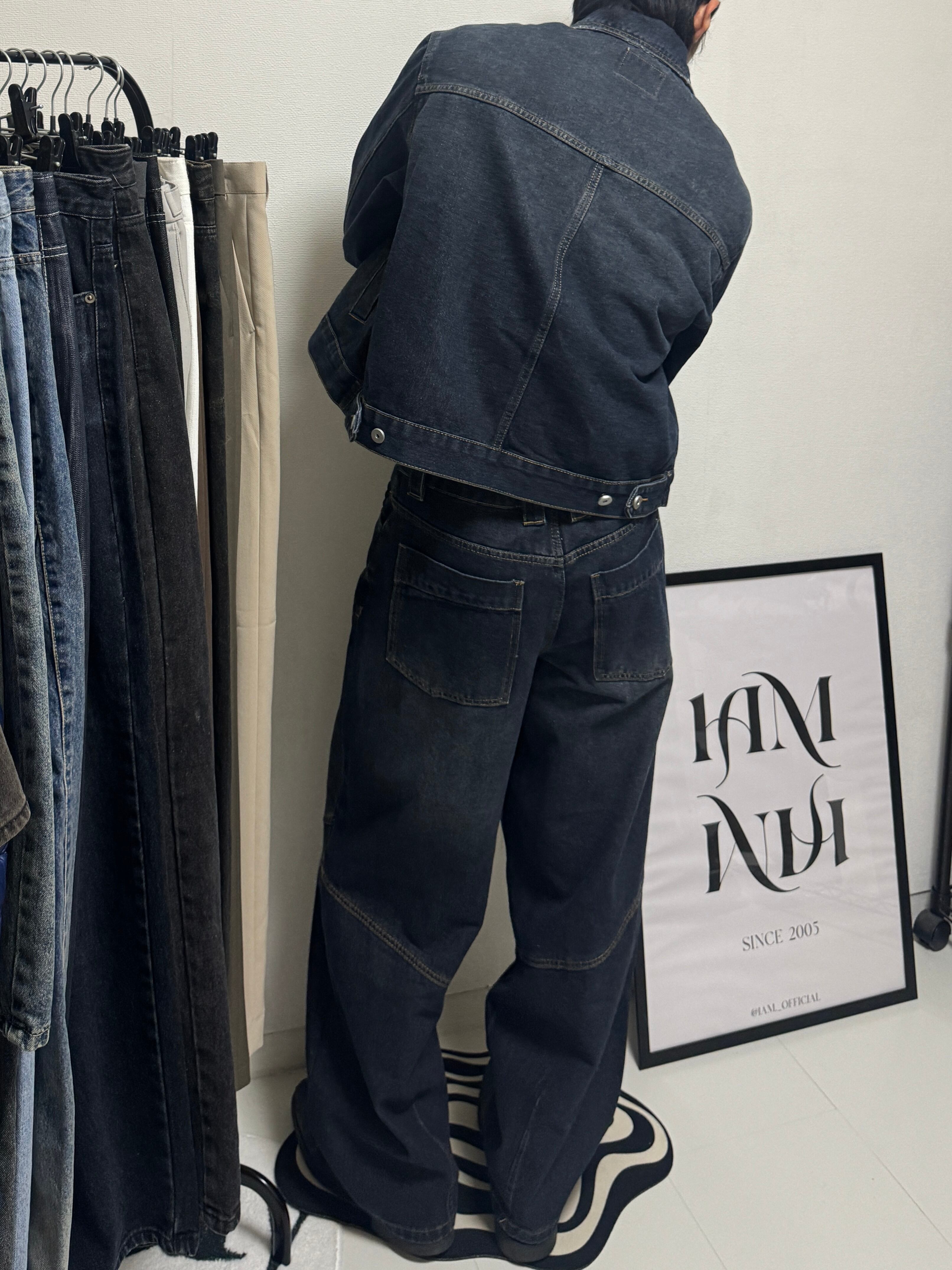 【PANTS】Structured Panel Lined Wide Denim (Dark Blue)